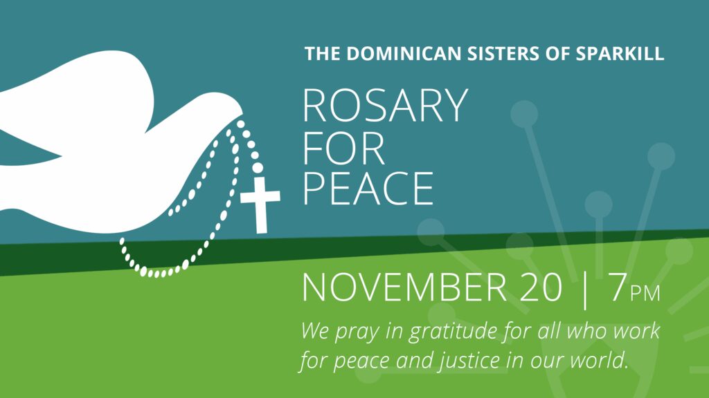 The Dominican Sisters warmly invite everyone-whether you join us regularly or for the first time-to our monthly Rosary for Peace on Thursday, November 20, at 7:00 PM ET. This virtual gathering will be held this month just on Zoom, beginning with a brief introduction, followed by the Rosary. Your presence and participation will enrich…
