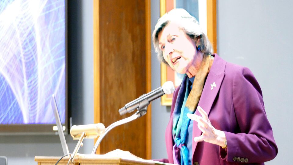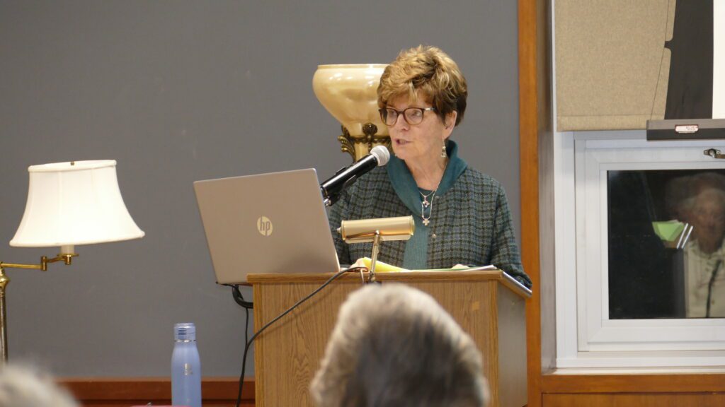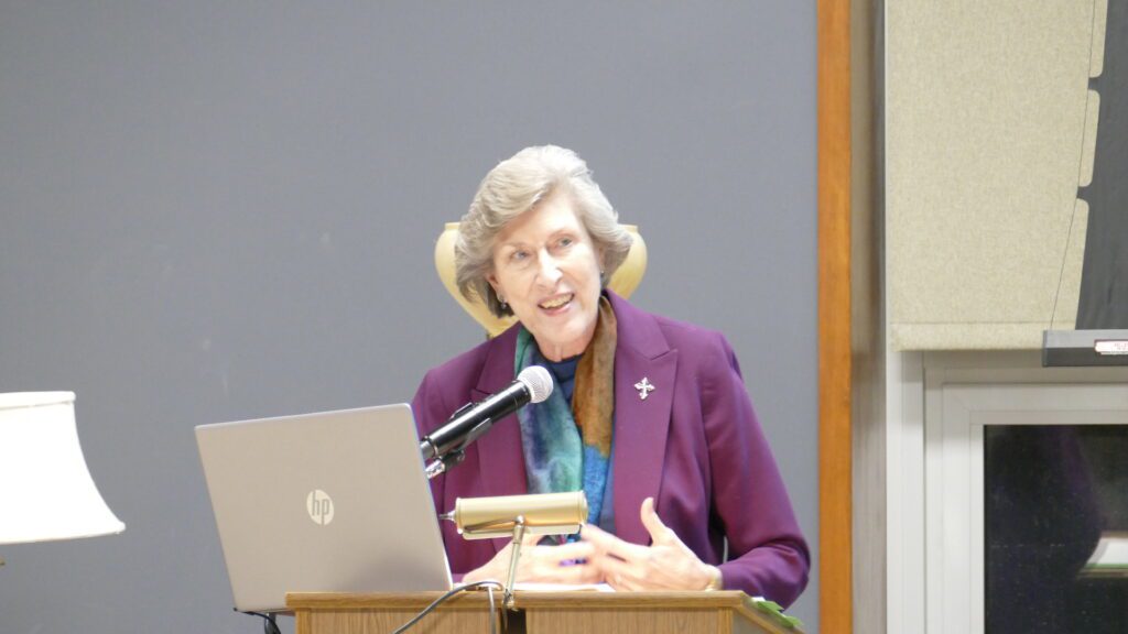The evening’s speaker was Sister Barbara Reid, OP, a renowned biblical scholar, regarded particularly for her work in feminist biblical interpretation. She has been on the faculty of Catholic Theological Union (CTU) in Chicago since 1988, where she also served as academic dean and vice president from 2009 to 2018, after which she was named president of CTU — the first woman to lead the school of ministry and theology. She is celebrating 50 years as a Dominican Sister of Grand Rapids.