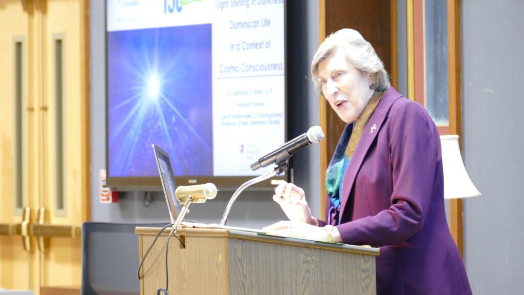 Sister Barbara began with the story of Creation in the Book of Genesis, noting that God’s Creation was “how good!” and that God sought to bring order and beauty to the chaos of the universe. She emphasized that Creation invites us to an experience of awe: “Look toward heaven and count the stars if you can” (Genesis 15:15) and “Praise God, sun and moon; . . . all you shining stars!” (Psalm 148:3) She remarked that for Dominicans, prayer and study are connected and lead one’s whole being into a “humility of the heart.” She also noted that the new observatory at St. Thomas Aquinas College, dedicated on September 30, 2025, could provide a wonderful experience of hope, prayer, and awe while observing celestial phenomena.